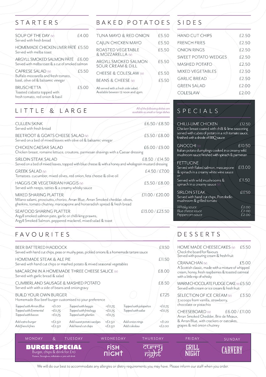 The Lorne Dunoon Menu at 249 Argyll St, Dunoon PA23 7QT, United Kingdom, offers a delightful dining experience that stands out for both its quality and variety. Whether you're a local or a visitor, this charming eatery captures the essence of traditional British cuisine with a contemporary twist. The menu caters to a diverse range of tastes, from comforting classics like fish and chips to more innovative dishes that showcase fresh, locally sourced ingredients.